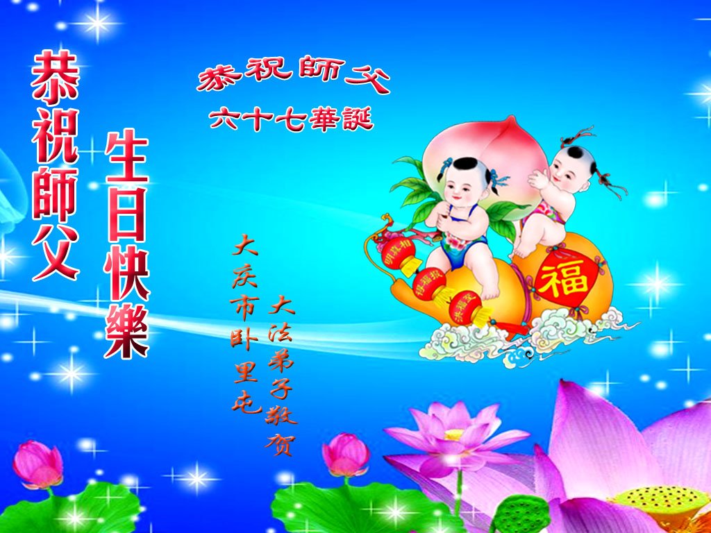 黑龙江大庆市卧里屯大法弟子恭祝师父生日快乐!