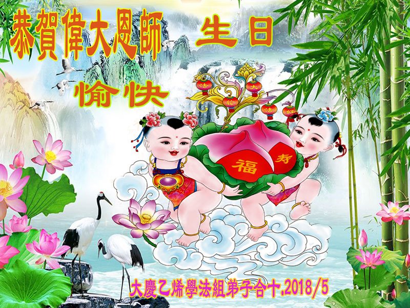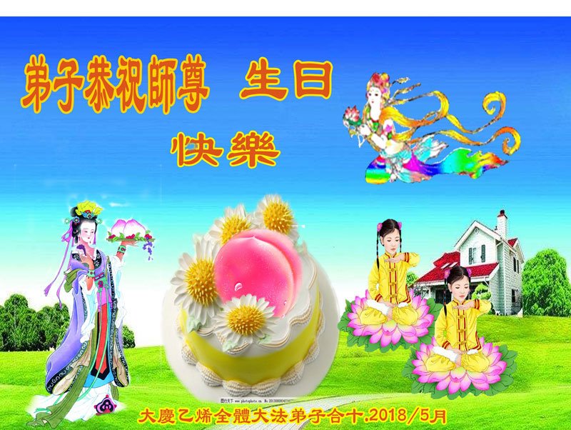 【明慧网二零一八年五月八日】 黑龙江省大庆大法弟子一学法小组弟子恭祝慈悲伟大的师尊生日快乐!