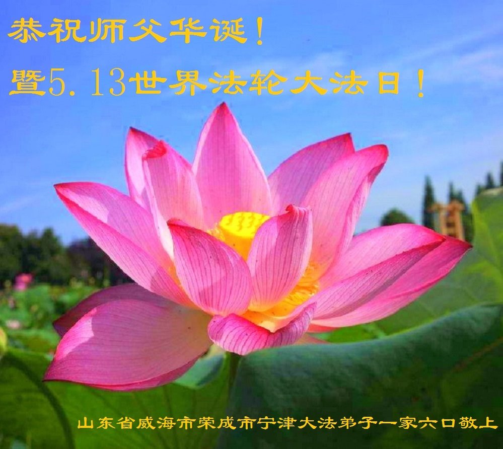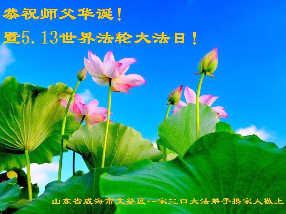 山东省威海市文登区一家三口大法弟子携家人恭祝师父华诞!暨5.13法轮大法日!