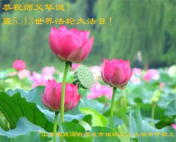 山东省威海市荣成市姐妹三人大法弟子恭祝师父华诞!暨5.13法轮大法日!