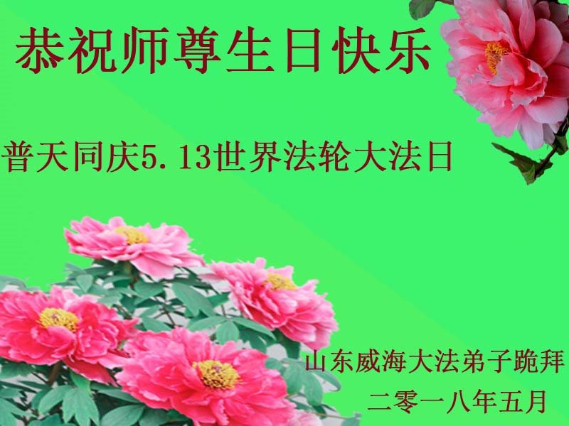 山东省东营市资料点大法弟子恭祝慈悲伟大的师尊生日快乐!普天同庆世界法轮大法日! 山东威海一大法弟子恭祝师尊生日快乐!普天同庆世界法轮大法日!
