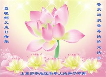 山东济宁各学法小组大法弟子恭祝慈悲伟大的师父生日快乐!普天同庆5.13世界法轮大法日!