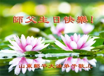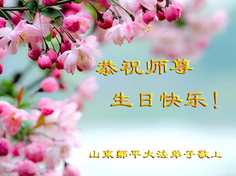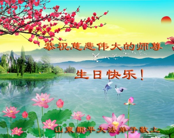 山东邹平大法弟子恭祝慈悲伟大的师尊生日快乐!