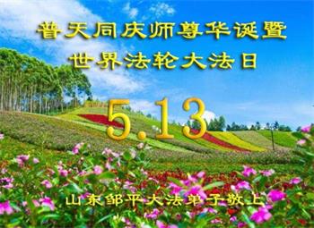 山东邹平大法弟子恭贺师尊华诞暨世界法轮大法日!
