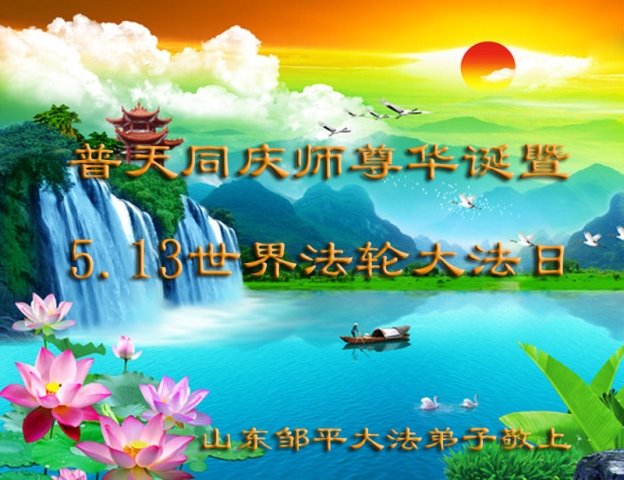 山东邹平大法弟子恭祝慈悲伟大的师尊生日快乐!暨世界法轮大法日!
