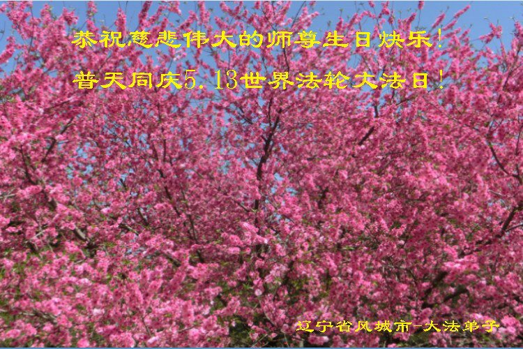辽宁省丹东市凤城市一大法弟子恭祝慈悲伟大的师尊生日快乐!暨普天同庆5·13世界法轮大法日!