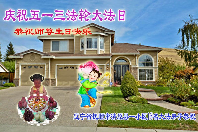 辽宁省抚顺市清原县一小区16名大法弟子恭贺世界法轮大法日!恭祝师尊生日快乐!