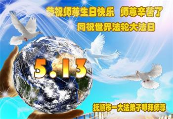 辽宁省抚顺一大法弟子恭祝师尊生日快乐!恭贺世界法轮大法日!