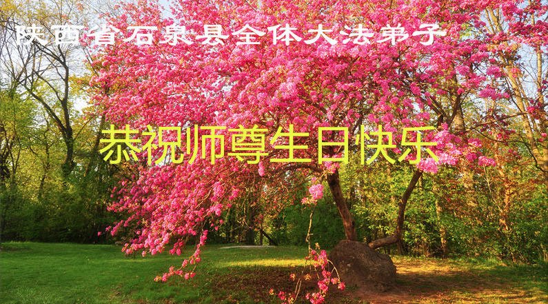 陕西省安康市石泉县全体大法弟子恭祝师尊生日快乐!