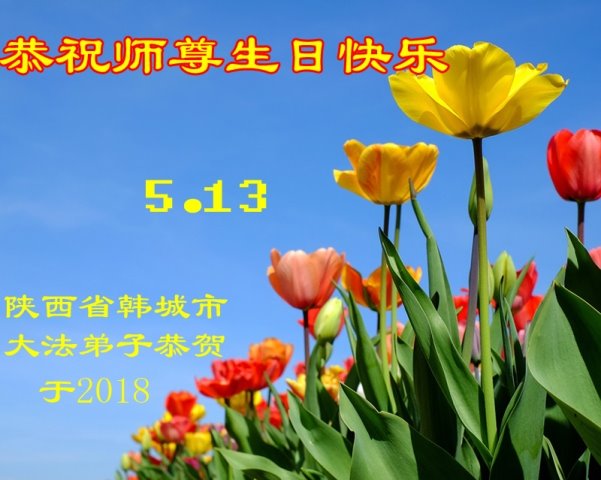 弟子们牢记师尊的谆谆教诲,以法为师,自我做起维护大法是每一位大法弟子为己任的;谨记:向内找,是法宝。形成整体,消除间隔,共同精進,整体升华。宝鸡市全体大法弟子跪拜师尊!双手合十 陕西省全体大法弟子恭祝慈悲伟大的师尊生日快乐!庆贺5.13世界法轮大法日!