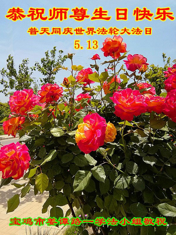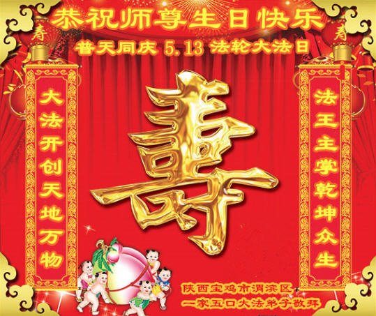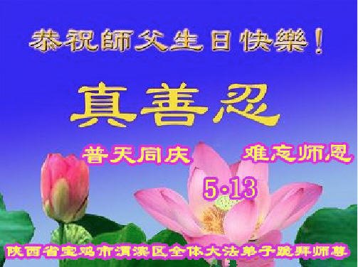 陕西省宝鸡全体大法弟子恭祝慈悲伟大的师尊生日快乐!庆贺5.13世界法轮大法日!