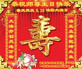 陕西省汉中市勉县大法弟子一家恭贺“5.13”世界法轮大法日,恭祝师尊生日快乐!
