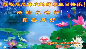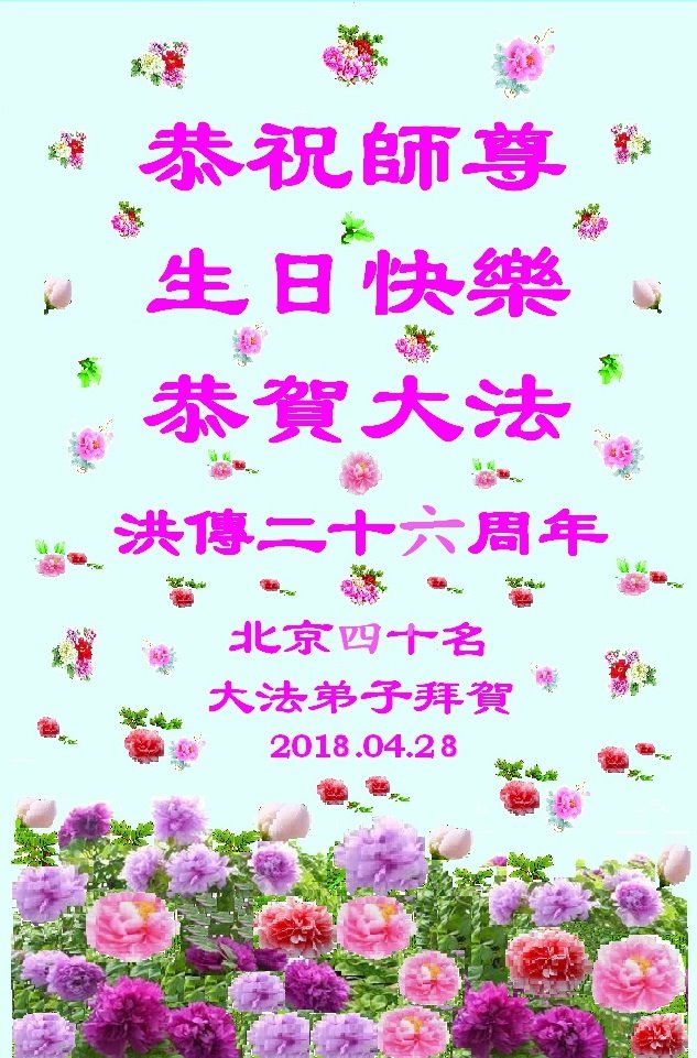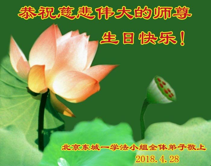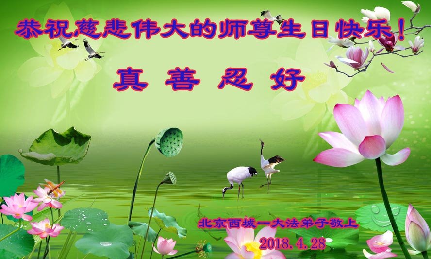 恭祝慈悲伟大的师尊生日快乐!祝贺世界法轮大法日! 北京西城大法弟子 2018年4月 北京西城一大法弟子恭祝慈悲伟大的师尊生日快乐!庆祝513法轮大法日!