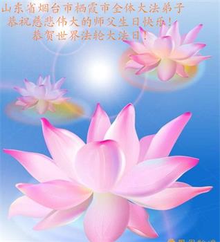 恭贺世界法轮大法日! 山东省烟台市栖霞市全体大法弟子恭祝慈悲伟大的师父生日快乐!恭贺世界法轮大法日!