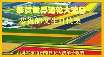 四川省凉山州德昌县大法弟子恭贺世界法轮大法日!恭祝师父生日快乐!