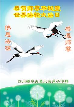 四川遂宁夫妻大法弟子恭祝师父华诞暨世界法轮大法日5.13!