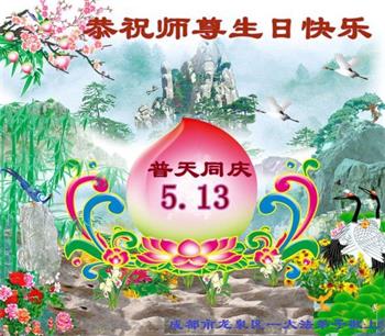 四川省成都东门一大法弟子恭祝师尊生日快乐!普天同庆世界法轮大法日!