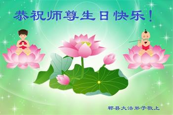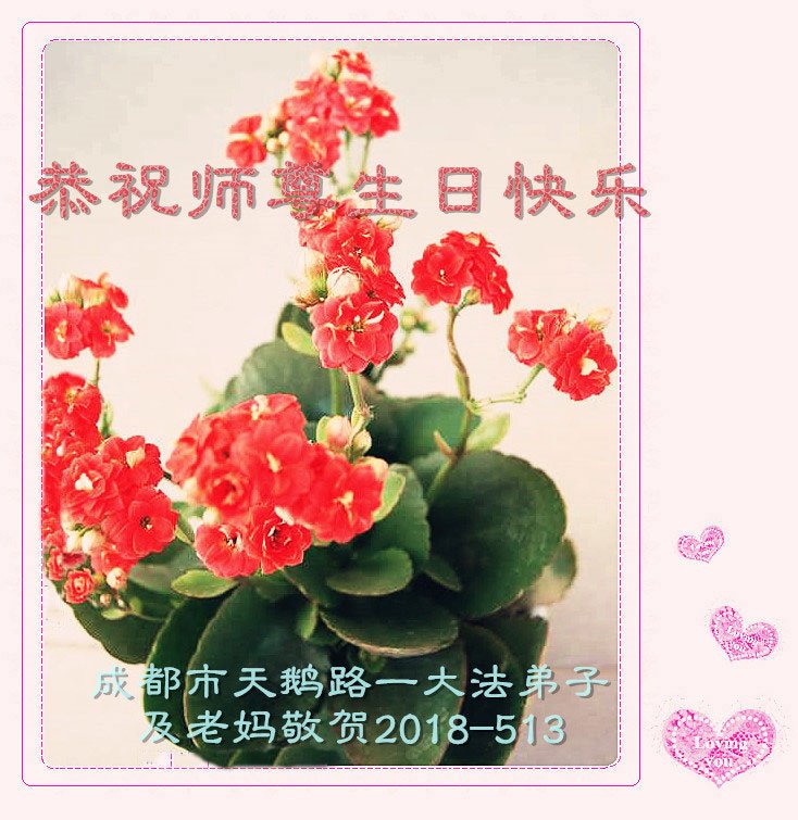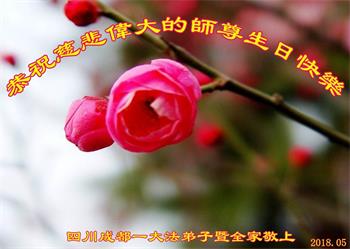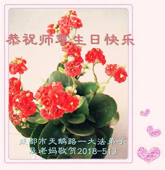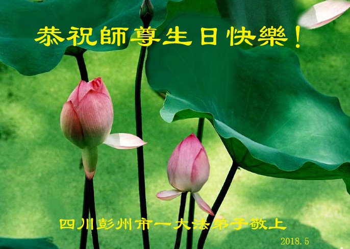 【明慧网二零一八年五月八日】 四川省成都市彭州市一大法弟子恭祝师尊生日快乐!