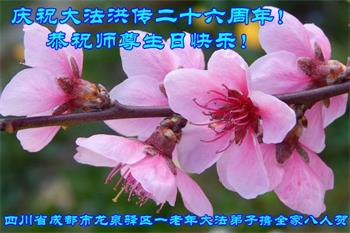 四川省成都龙泉区一老年大法弟子恭祝师尊生日快乐!恭贺世界法轮大法日!