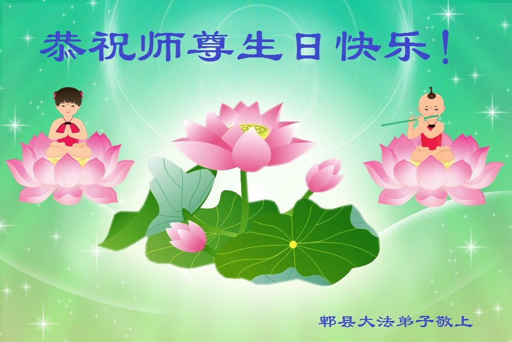 四川省成都市郫都区全体大法弟子恭祝慈悲伟大的师尊生日快乐!普天同庆5·13世界法轮大法日!
