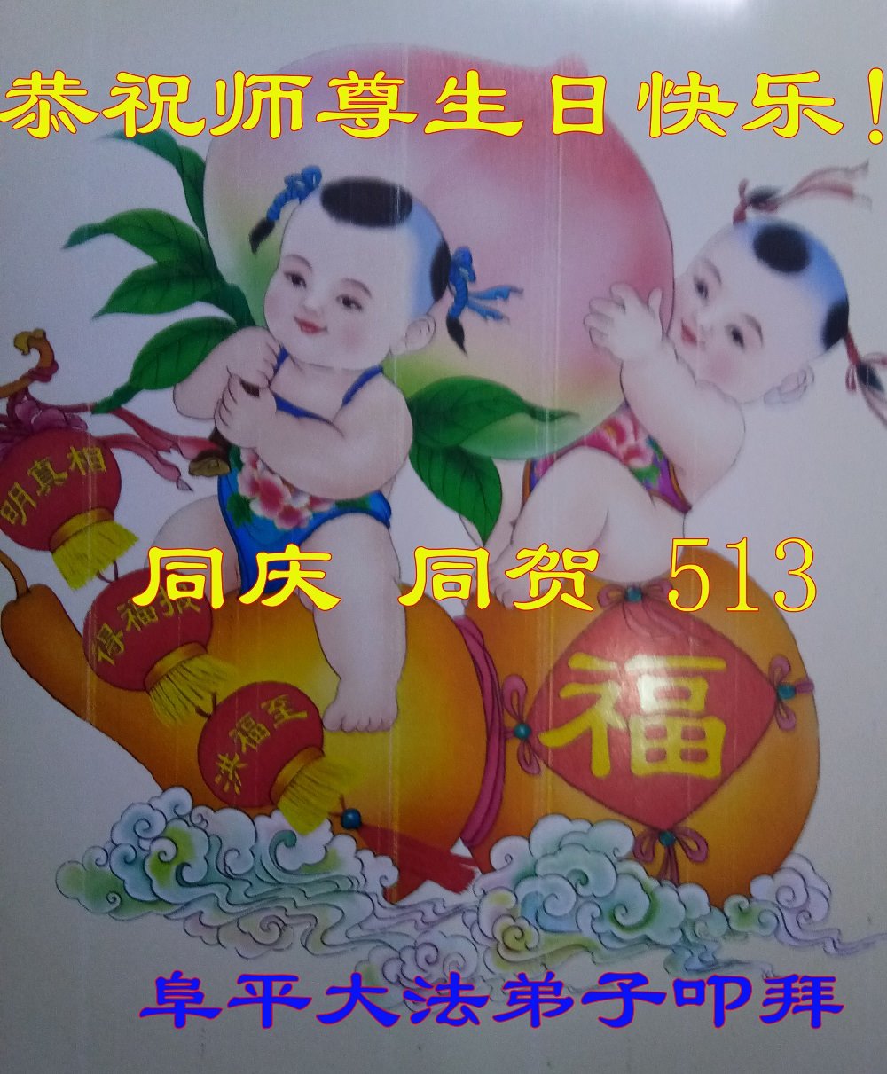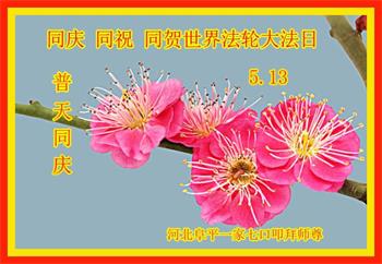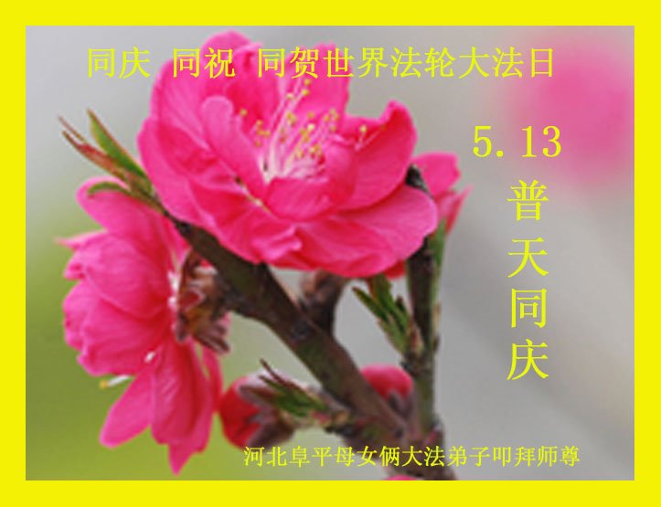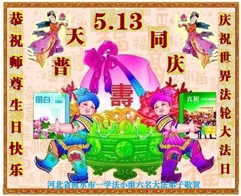 年年同庆5.13 日日盼望师尊还 叩拜师尊生日好 助师正法我心愿 讲清真相多救人 跟随师尊把家还 河北省邯郸市成安县大法弟子恭贺师尊华诞,庆祝世界法轮大法日!