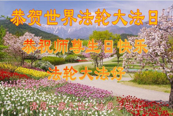 辽宁省抚顺市清原县一家九位大法弟子恭贺世界大法日暨师尊华诞!