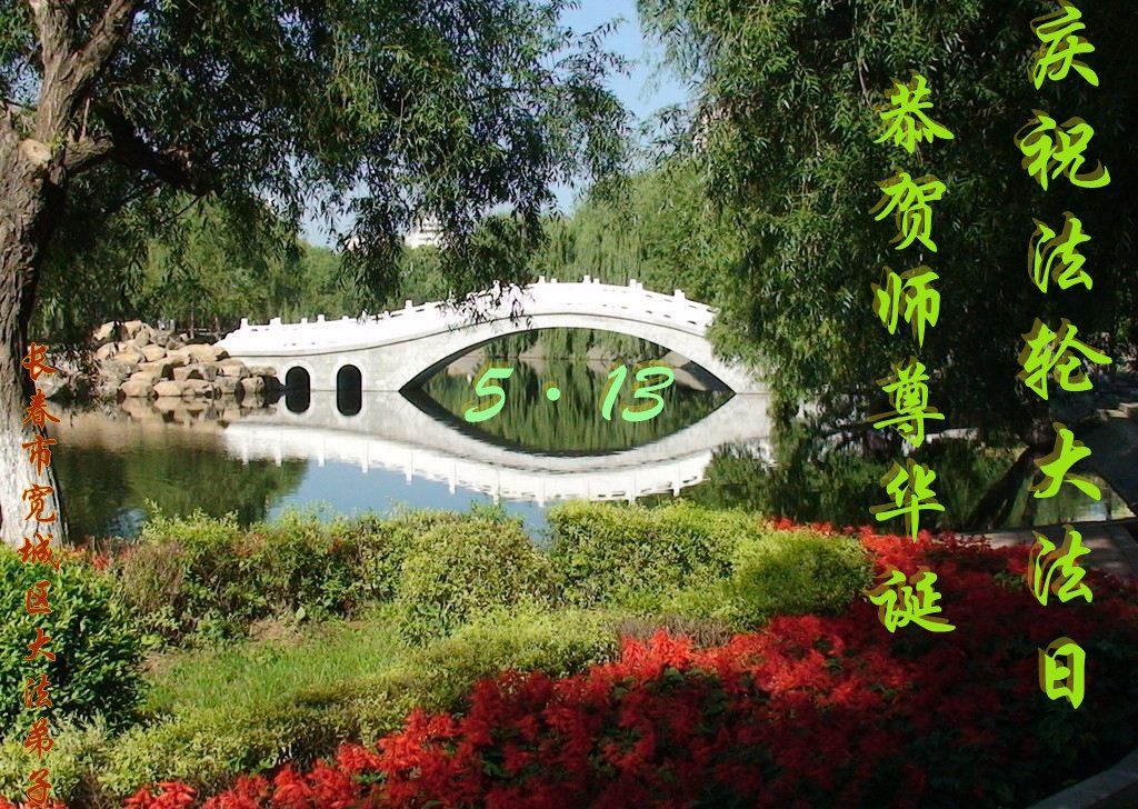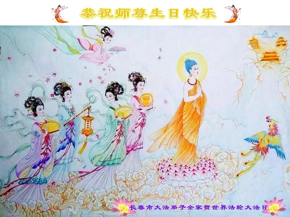 长春大法弟子以最崇敬的心情:恭祝慈悲伟大的师父生日快乐!欢庆法轮大法洪传世界二十六周年! 普天同庆日 感恩谢师尊 慈悲救万众 法光照人间 观念行为转 真相破谜团 得法塑神体 救度在兑现 同化真善忍 亿万佛道神 走回传统路 梅花满园春 为见创世主 那是我真念 辗转千百年 一梦终靠岸 苍生归正道 正法在人间 拜谢恩无量 大穹亘古新 长春净月大法弟子敬上 吉林长春德惠大法弟子敬贺师父生日快乐!