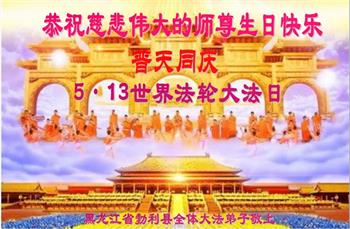 黑龙江省七台河市勃利县大法弟子恭祝师尊生日快乐!普天同庆世界法轮大法日!