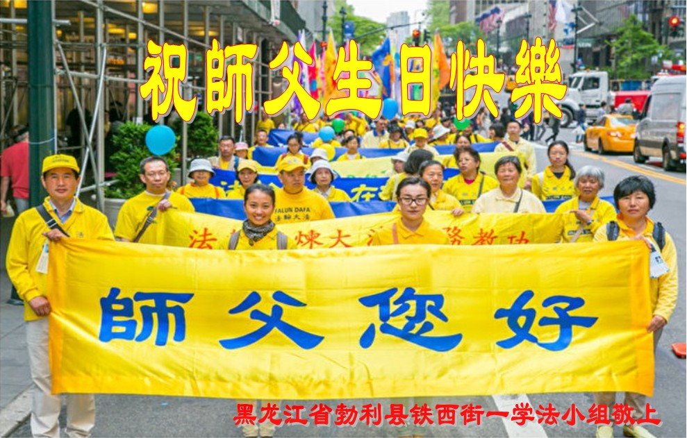 黑龙江省七台河市勃利县铁西街一学法小组大法弟子祝师父生日快乐!