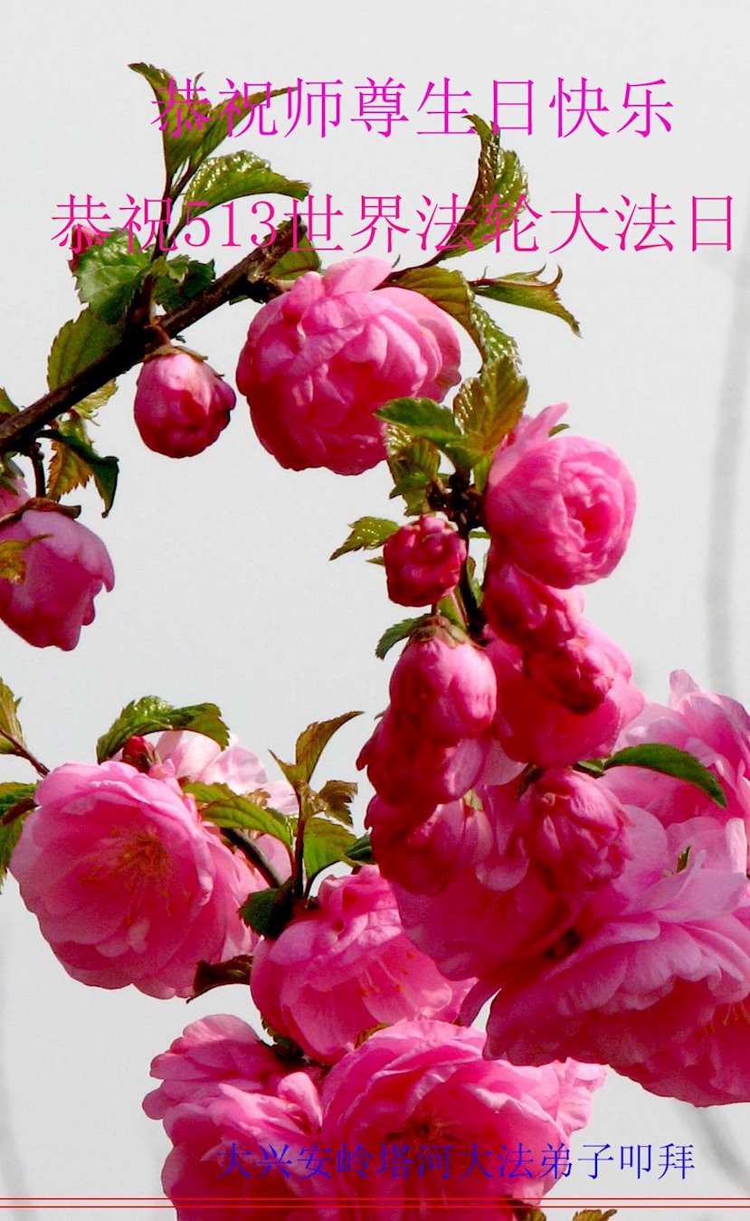 黑龙江省大兴安岭塔河大法弟子恭祝师尊生日快乐!恭贺法轮大法日!