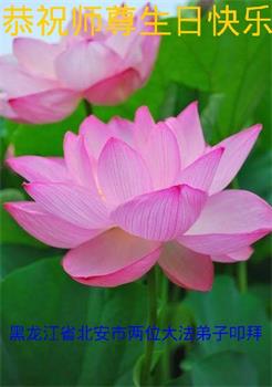 黑龙江省七台河市勃利县夫妻大法弟子恭祝师父生日快乐!