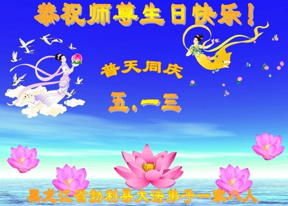 黑龙江省七台河市勃利县一家大法弟子恭祝师父生日快乐!