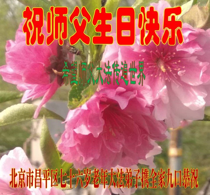此生能成为正法时期大法弟子是师尊的恩赐!此生能成为北京的大法弟子是我们的荣耀!此生我们与师尊和大法同在是我们的幸运!此生得到大法的救度是师尊的恩典!北京大法弟子跪拜! 北京市昌平区七十六岁老年大法弟子携全家九口恭祝师父生日快乐!