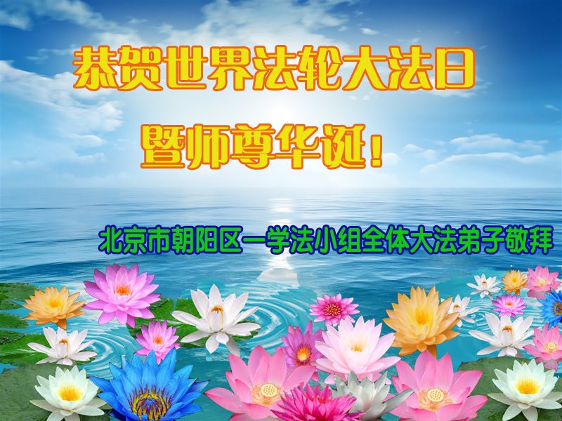 北京市朝阳区一学法小组全体大法弟子恭贺法轮大法日