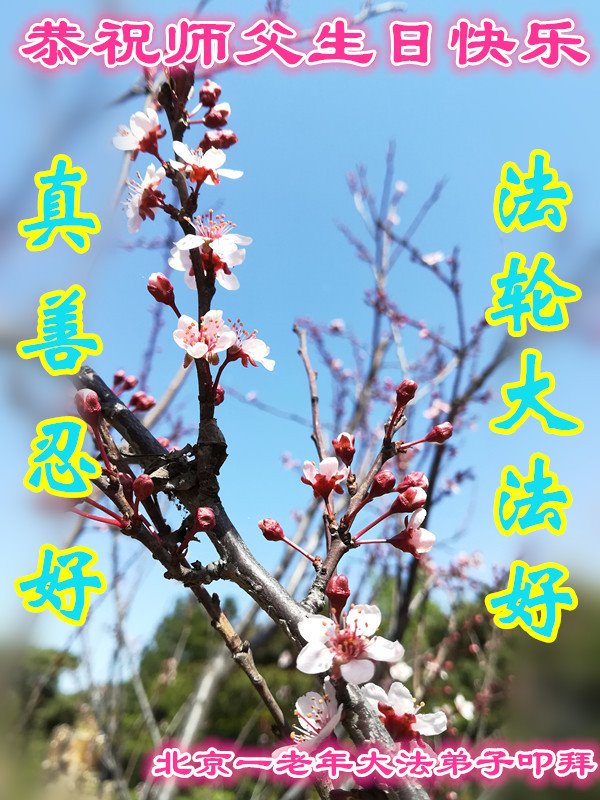 北京一老年大法弟子恭祝慈悲伟大的师父生日快乐!