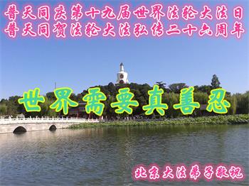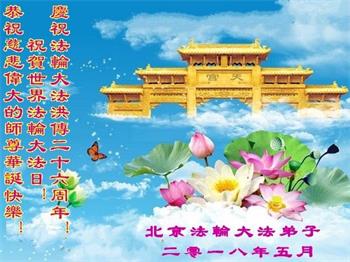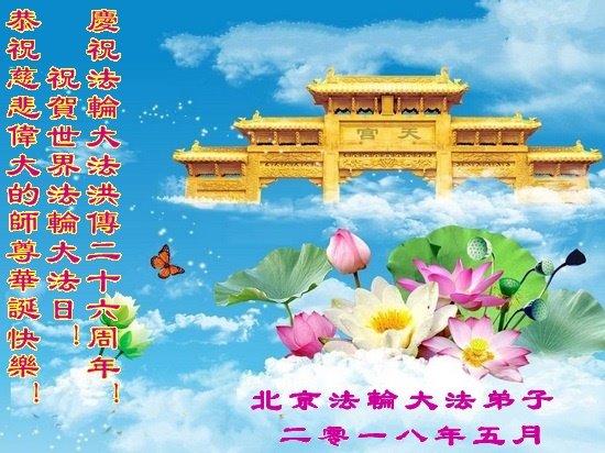 北京一大法弟子恭贺师尊华诞及法轮大法洪传26周年!
