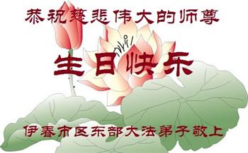 请师尊放心,在有限的时间里学好法、修好自己,多救人,跟师尊回家。 黑龙江省伊春市全家大法弟子恭祝慈悲伟大的师尊生日快乐!普天同庆世界法轮大法日!