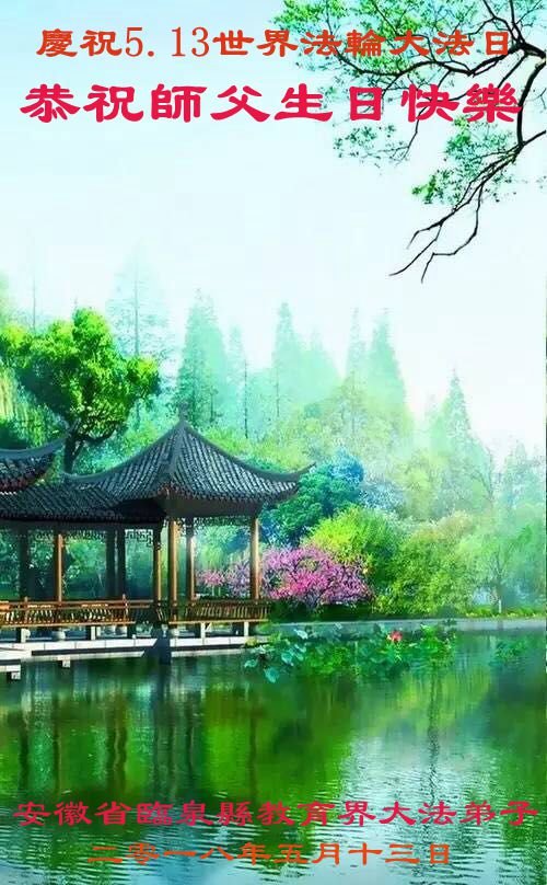 安徽省阜阳市临泉县教育界大法弟子庆祝5.13世界法轮大法日!恭祝师父生日快乐!