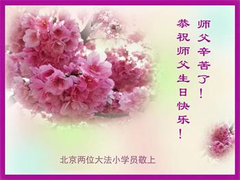 北京两位大法小学员恭祝师父生日快乐!师父辛苦了!