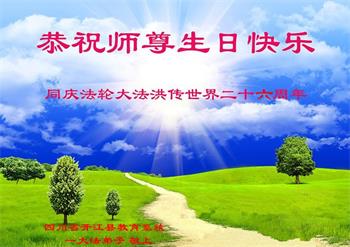 四川省达州市开江县教育系统一大法弟子恭祝师尊生日快乐!庆祝法轮大法洪传世界二十六周年!