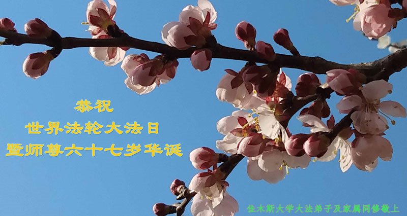 黑龙江省佳木斯大学大法弟子恭贺世界法轮大法日暨师尊华诞!