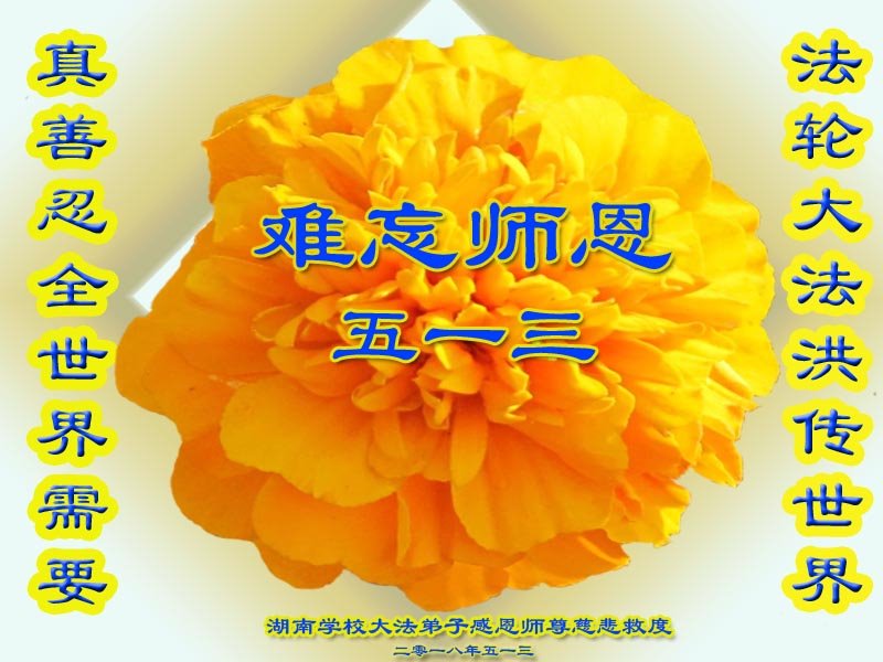 湖南学校大法弟子恭贺师尊华诞!热烈庆祝第十九届世界法轮大法日!庆祝法轮大法洪传二十六周年!