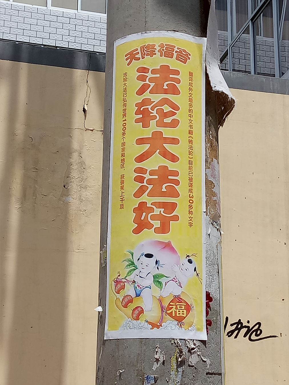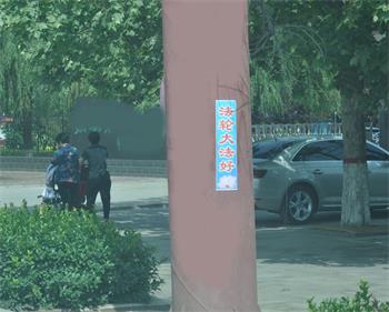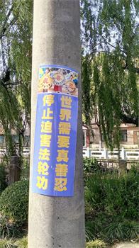 “5.13”是普天同庆世界法轮大法日暨大法师父生日的节日,河北省会市区的真相粘贴给世人带去美好的祝愿。