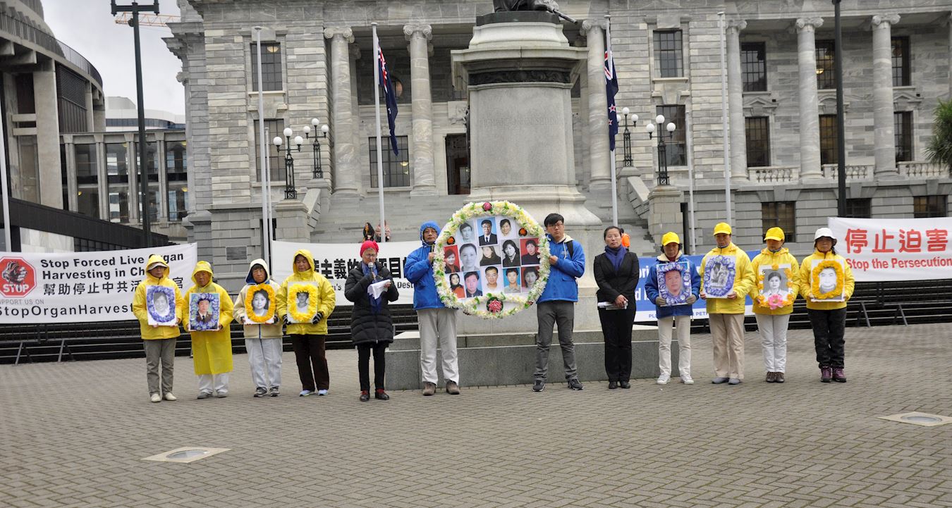 【明慧网二零一八年七月二十六日】(明慧记者亦清新西兰报道)位于南半球的新西兰首都威灵顿被称为“风城”。威灵顿的七月寒冷潮湿,寒风冷雨让人望而生畏。二零一八年七月二十四日,新西兰法轮功学员们在国会门前,向人们讲述在过去的十九年里,在中共江泽民集团的残酷迫害下,无数善良无辜的中国法轮功学员流离失所,家破人亡,他们被非法关押,被酷刑折磨致死,甚至被中共活摘器官牟利。法轮功学员希望更多的新西兰人来了解真相,并帮助制止中共在中国的反人类的暴行。 图1:二零一八年的七月二十四日,新西兰法轮功学员们在首都威灵顿国会门前抗议中共迫害。 |