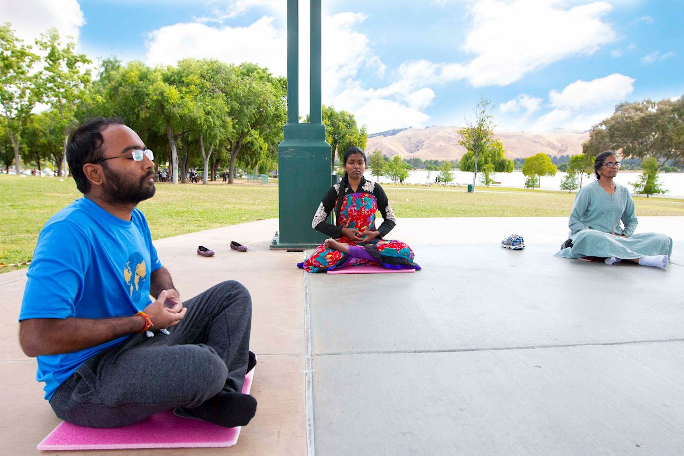 大陆李女士:我要继续修炼下去 来自中国大陆的李女士七月三十一日参加了图书馆的教功班,感觉很好,于是报名参加了九天班。她参加九天班的第一天,开车回家时,就感觉浑身轻松。第二天学炼第一套功法,在做双手叠扣小腹动作时,感觉到有什么东西“蹬”的一下落在小腹部位。 她表示,这几天睡觉不太好,血压有些高。学功后回家量血压,发现原来不正常的高血压降了下来。 李女士每天都高兴地来听师父讲法,第六天炼第五套神通加持法时,就可以双盘了。她还高兴地带儿子一起来学功。 “师父的讲法跟一般的气功师讲的不一样。不光要炼功,还要修,要修心性,我觉得这个挺不容易的,但我想试一试,按照修心性的要求去做。”李女士用二天的时间看了一遍《转法轮》,“虽然有些地方还不理解,但我愿意继续修炼下去。”她表示,将参加中文集体学法小组的学法。 基督徒:一生中遇到的问题都有了答案 来自台湾的张女士是个基督徒。几个月前,她在《大.纪.元;时报》上看到了法轮功义务教功的广告,就联系了南湾的炼功点学功。之后搬到东湾,正好了解到有九天班,于是马上报名参加。 她表示,从来没有人象师父讲的那样。在任何一个宗教中,她都没有看到讲了这些。“看了师父的《转法轮》,很多问题都有了答案了。”张女士说,“所以可以看很多遍《转法轮》。” 张女士说:“师父把全部都讲出来了,所以我很认同这个理。我看了书,就觉得我就属于这里。” 投资人:会继续修炼下去 股票投资人苏尼尔(Sunil)八月初在佛利蒙艺术节看到法轮功学员的展位,对学炼法轮功非常感兴趣,报名参加九天班,并请了一本《转法轮》。自九天班开始,他每天都坚持参加,并非常认真的学炼法轮功功法。在学炼第五套功法时,一下就可以双盘。 苏尼尔表示,参加九天班后,经常自己在家炼功,他炼静功时,可以感觉到能量。他表示,以前做事时比较盲目,现在做事时,他会思考,然后再去做。他表示,会继续修炼下去。  图5:阿布舍克(左)和妹妹哈希妮(左二)六月份参加佛利蒙炼功点的晨炼 |