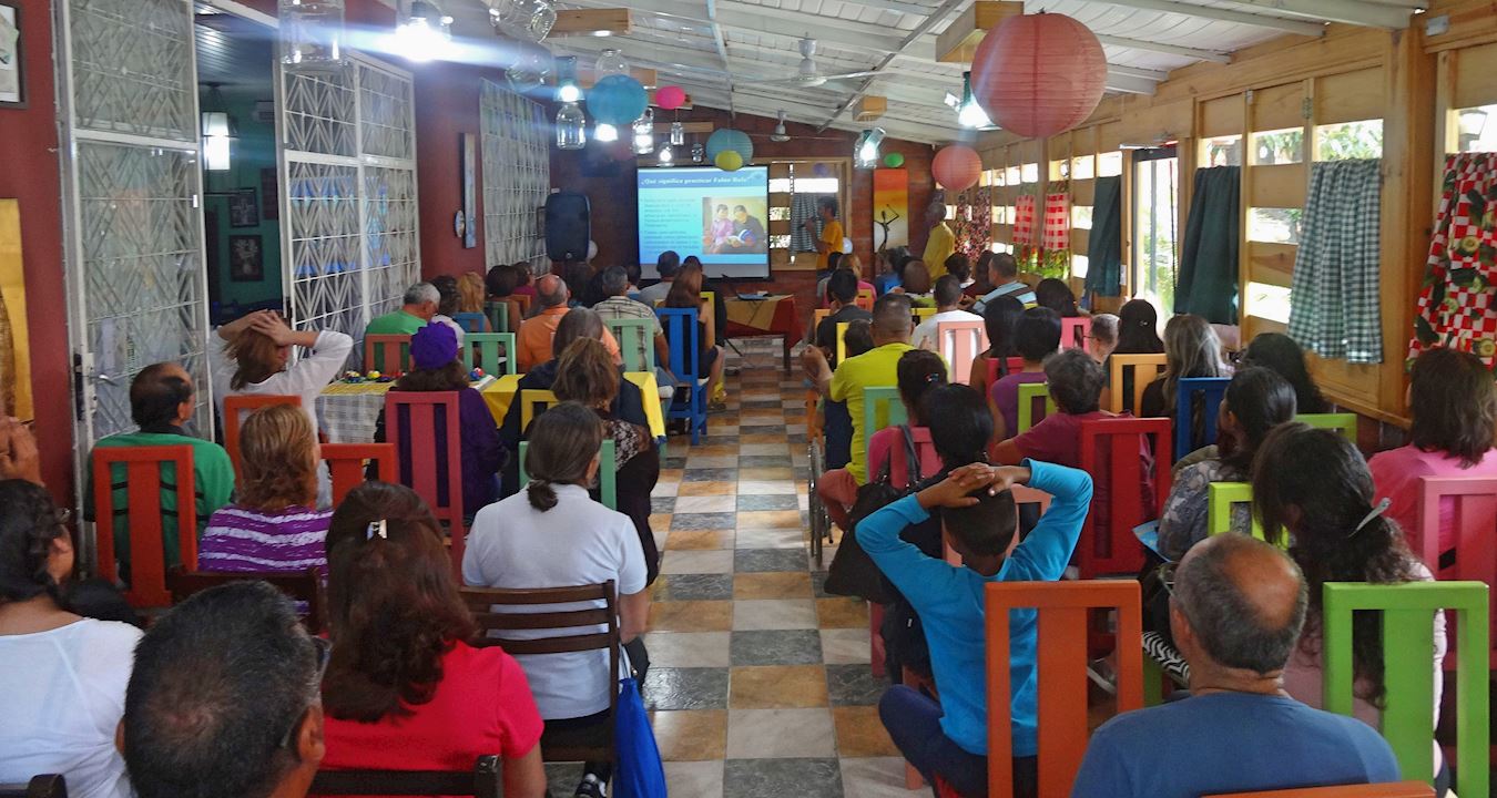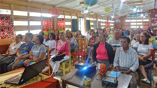 【明慧网二零一八年八月三十一日】法轮大法研讨会于二零一八年八月十二日,首次在委内瑞拉阿拉瓜州(Aragua)首府卡瓜(Cagua)成功举办。会中,来自不同地区的法轮大法学员,向与会者介绍了这种传统的身心修炼方法,展示和教授了法轮功五套功法的动作,并揭露了目前发生在中国对法轮大法学员迫害的现况。 图1:近日,委内瑞拉的法轮功学员首次在阿拉瓜州举办法轮大法研讨会,五十多名民众前来参加。 |