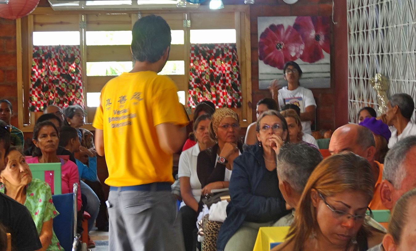 值得关注的是,目前委内瑞拉的情况非常困难,虽然资源丰富,本该富足的国家,却非常贫穷。据悉,许多民众每月的收入只有不到十美元。很多人表达了希望了解这种功法,想要来参加研讨会,但最后却因为不能克服交通问题而无法成行。这个国家的居民在交通上有着诸多不便,公车班次很少,稀少的现金也不足以支付交通费用,很多人因为汽油短缺及无法负担车辆维修费用,甚至不能再自己开车旅行。 然而,尽管全国各地的情况如此艰难,但仍有五十多人能够在这一天内克服自己的问题前来参与了这次活动。在活动结束时,一些与会者分享了自己在修炼中的经历,他们感受到内心和平,也希望有一个更美好的未来,并表达了在家里继续修炼的意愿,把法轮大法告诉家人和朋友,到距离最近的瓦伦西亚集体炼功点学习。最重要的,是期待在他们的城市建立一个集体炼功点。