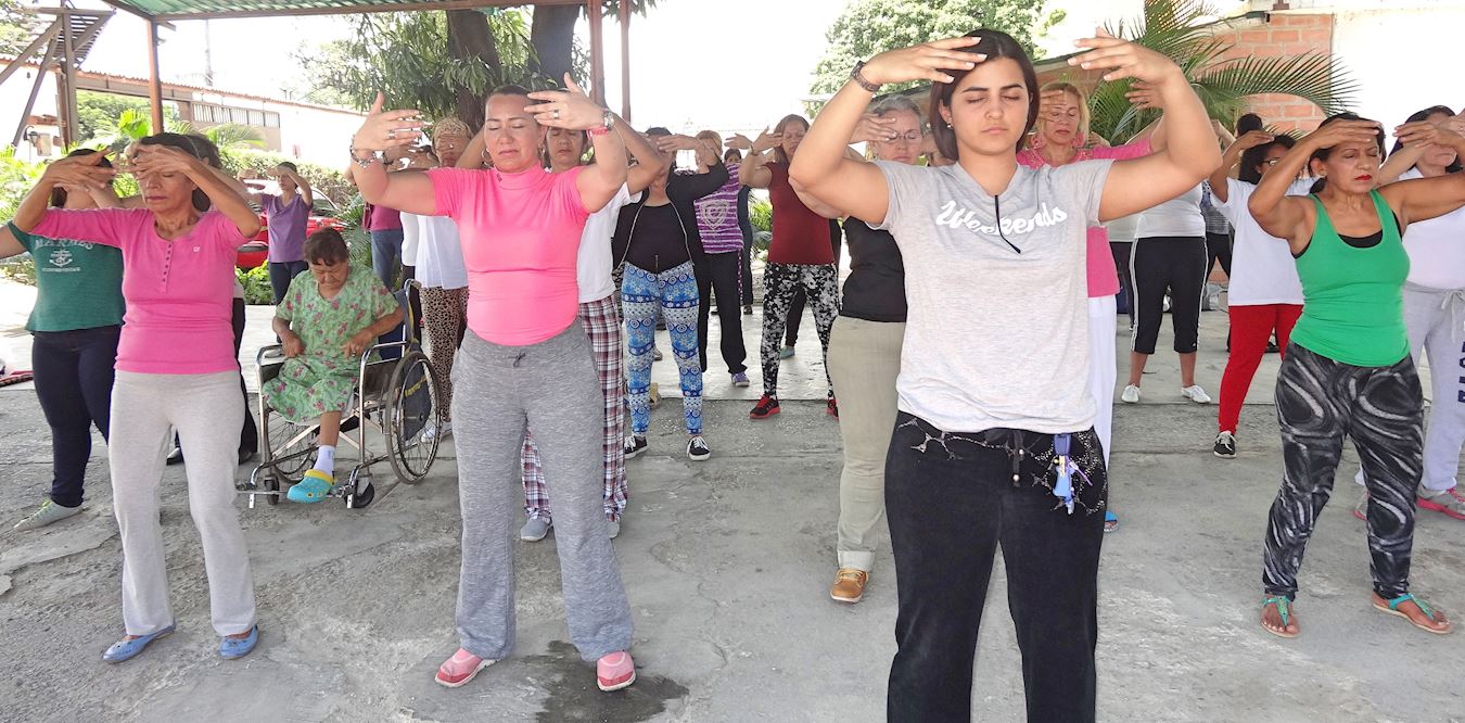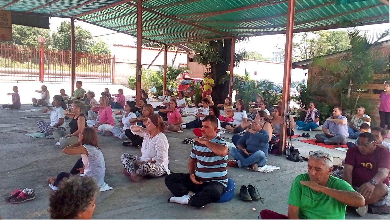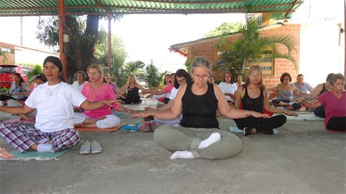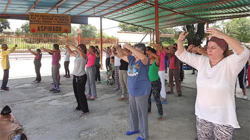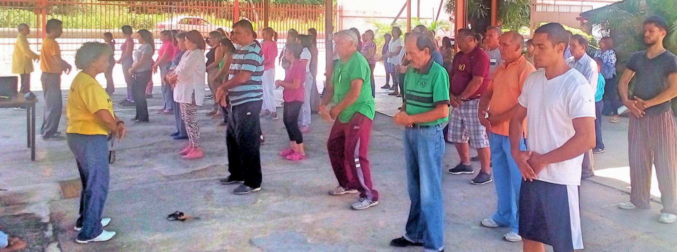 这次来参加了这个研讨会的、来自阿拉瓜州马拉凯(Maracay)、卡瓜(Cagua)、图尔梅罗(Turmero)和库拉镇(Villa De Cura)等城市、地区,以及瓜里科州(Guárico)和 米兰达州(Miranda)的民众。  图4~8:民众正在学炼法轮功功法。 |