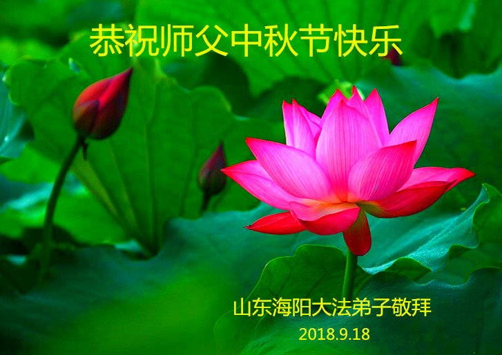 【明慧网二零一八年九月二十一日】 山东省烟台市海阳市一乡村老年大法弟子恭祝慈悲伟大的师尊中秋快乐!