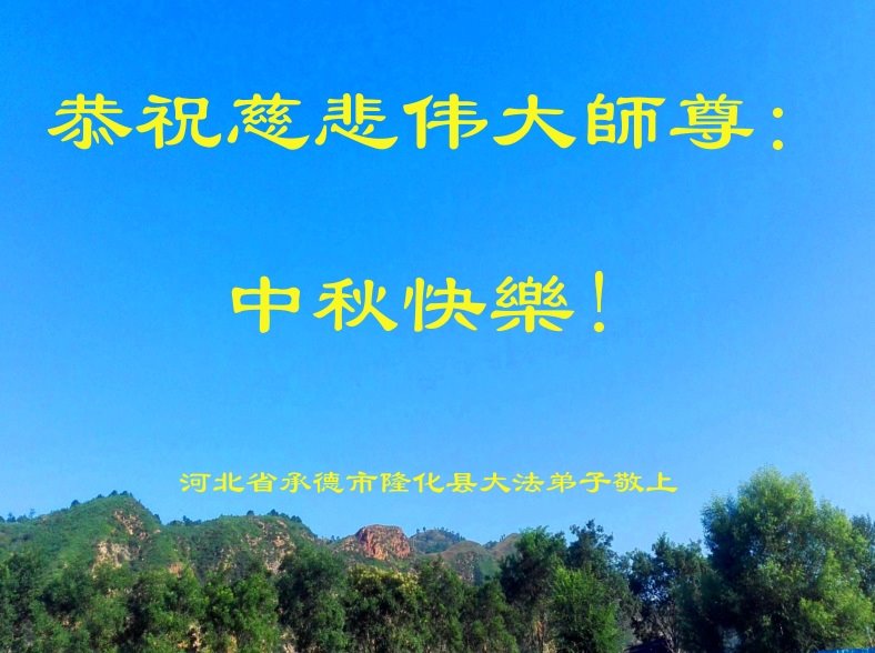 恭祝师父中秋快乐! 弟子无法用语言表达对师父的感恩!唯有精進实修,不断提高自身,做好三件事,才能不辜负师父的慈悲苦度。 河北邯郸一大法弟子叩拜 河北平泉南北学法小组恭祝恩师中秋节快乐!